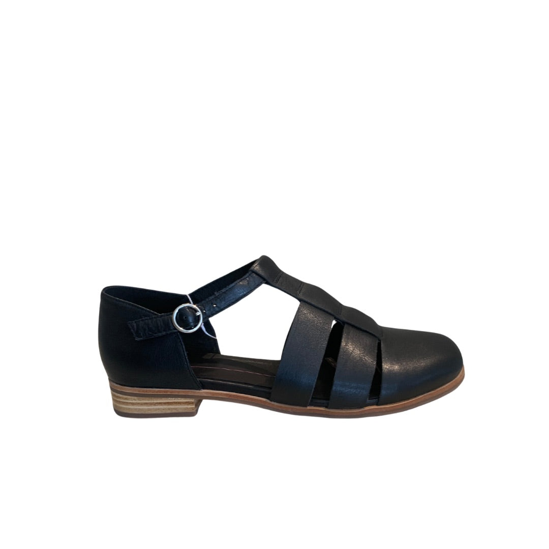 Contemporary meets classic with Mollini's Quizzed, an elegant leather hybrid that marries the breathability of a sandal with a closed toe. The super- soft black leather upper is softened by the natural tones of the flat stacked sole.