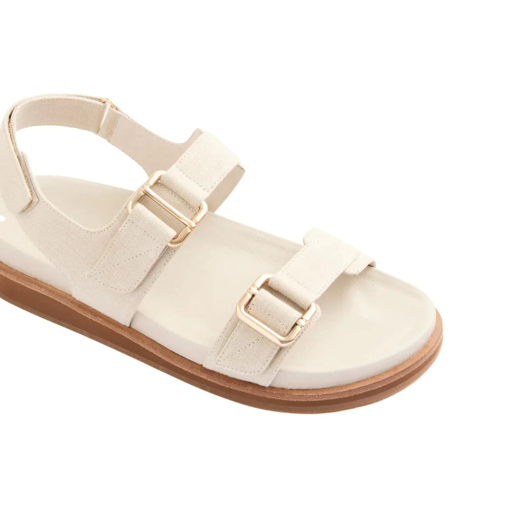 High-rotation style that still has that special touch—introducing Thompson in always elegant Black. Featuring fully adjustable upper straps, complete with a convenient hook and loop system and statement hardware. Designed for a perfect fit, Thompson is also equipped for high-rotation style with a triple-layered support and cushion system and durable rubber soles.