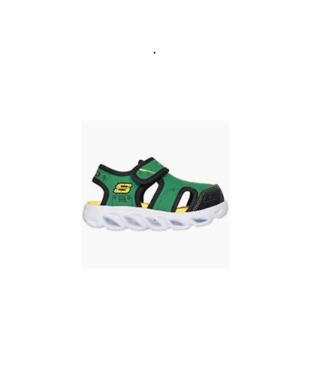 Get ready for sunny-weather adventures wearing Skechers x John Deere: Hypno-Splash. This lighted closed-to sandal features a tractor-themed smooth synthetic upper with an adjustable instep strap, step-activated light-up midsole, and a contoured cushioned footbed.