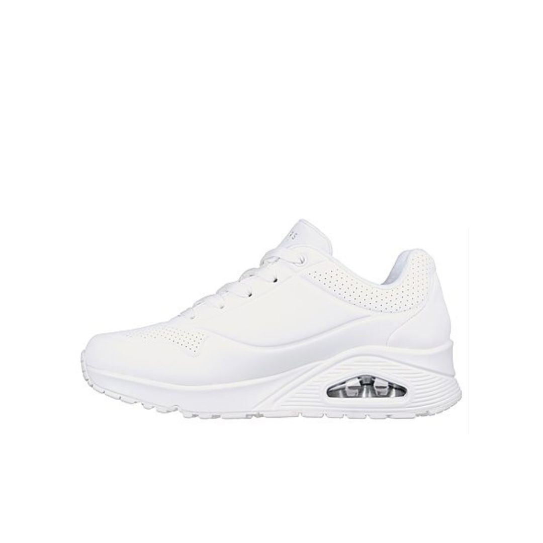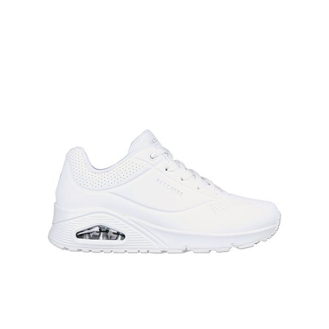 Classic air-cushioned comfort gets a fresh update in Skechers Street™ Uno - Stand on Air. This lace-up fashion style features a smooth perforated synthetic upper with an Air-Cooled Memory Foam insole, and a Skech-Air visible air-cushioned midsole.